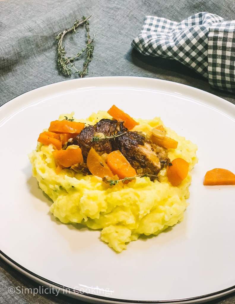Den Topf schließen und für 3-4 Stunden in den Ofen geben bis das Fleisch vom Knochen fällt.